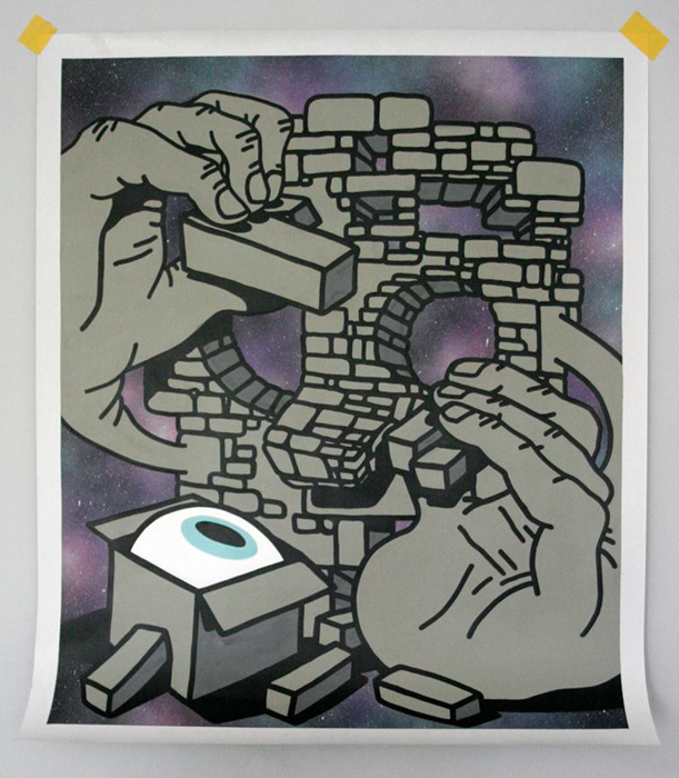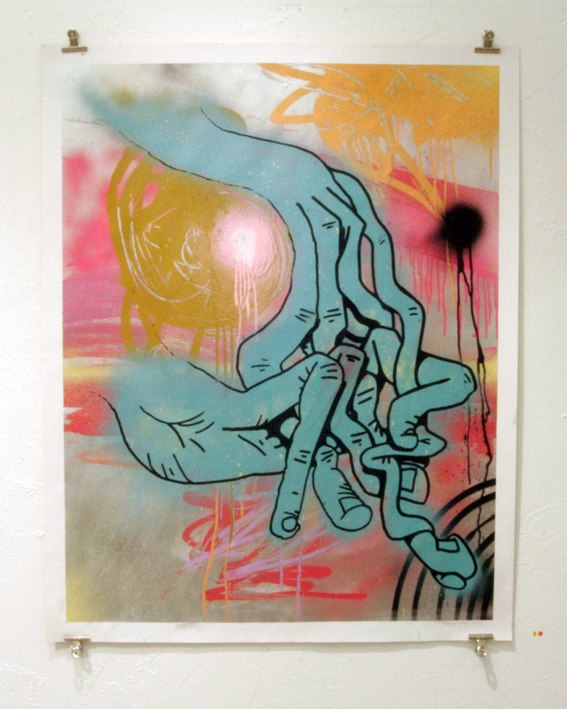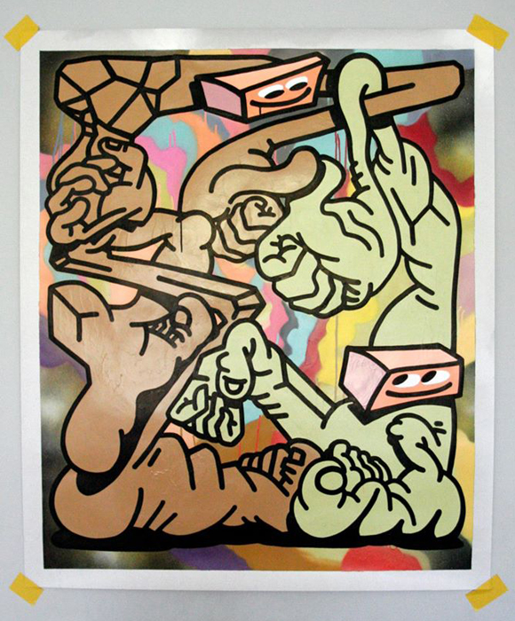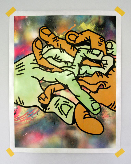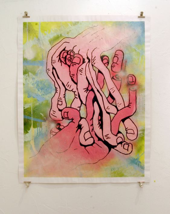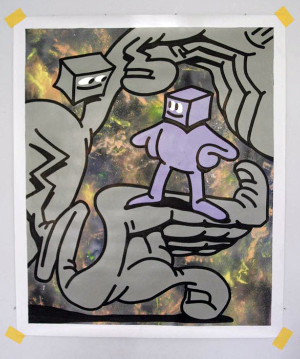 KOLLABORAATIO – Spraypaint and acrylic on paper.