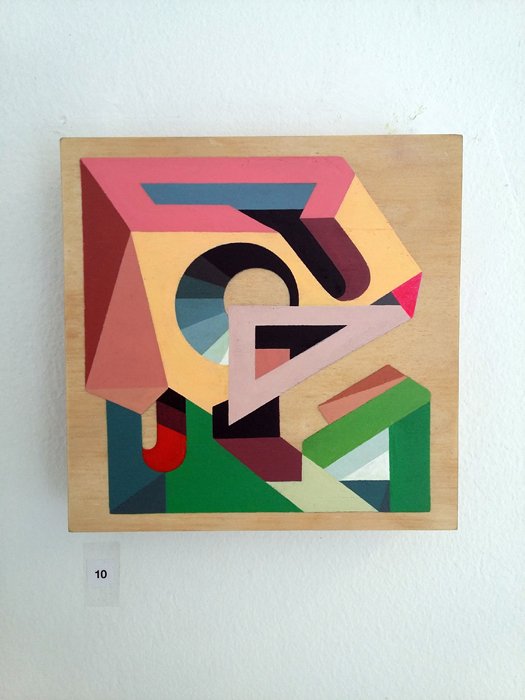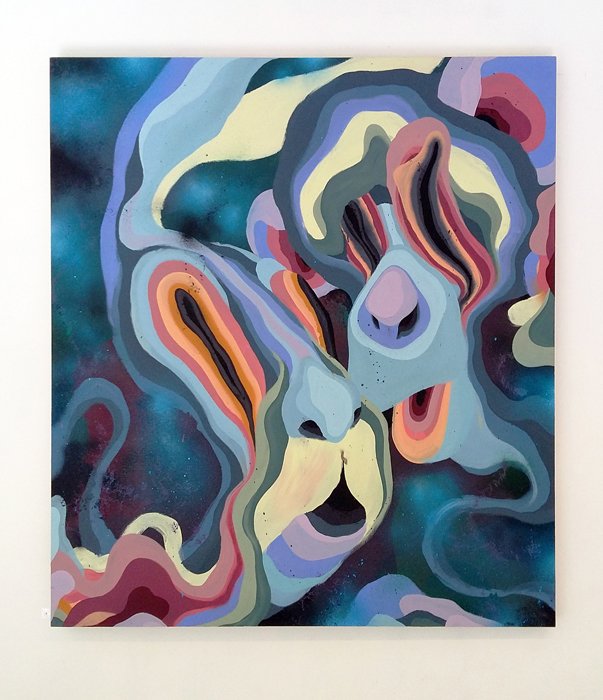 Acrylic and spraypaint on plywood
